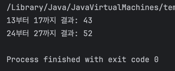 System.out.println("13부터 17까지 결과: " + sol.solution(left1, right1)); // 예상 출력: 43