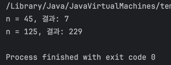 System.out.println("n = " + n1 + ", 결과: " + sol.solution(n1)); // 예상 출력: 7